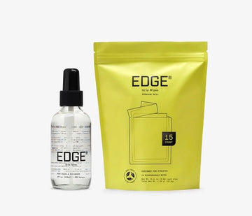 If your bottle of EDGE spills, first soak up any excess liquid with paper towels or a rag. Then, you can use a small amount of water or cleaning solution with a fresh rag to clean up any residue that is remaining.