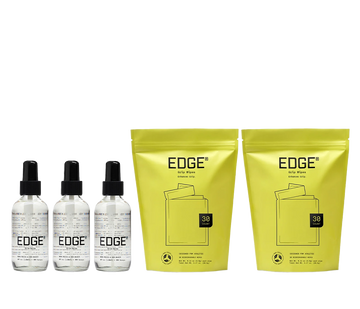 If your bottle of EDGE spills, first soak up any excess liquid with paper towels or a rag. Then, you can use a small amount of water or cleaning solution with a fresh rag to clean up any residue that is remaining.